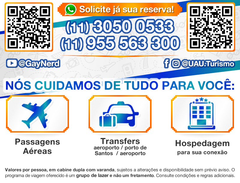 Solicite já sua reserva! Versão para WhatsApp e Facebook GayNerd em Alto Mar - Day by Day - UAU Turismo